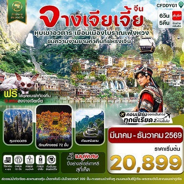 ทัวร์จีน จางเจียเจี้ย-เมืองโบราณเฟิ่งหวง-ฝูหรงเจิ้น-หุบเขาอวตาร-ประตูสวรรค์ 6วัน 5คืน บิน FD (ไม่ลงร้านรัฐบาล) FCFDDYG1 เดินทาง 7-12 , 21-26 มี.ค. ราคา 22899 เดินทาง 12-17 , 26-31 มี.ค. ราคา 23899 เดินทาง 4-9 , 9-14 เม.ย. ราคา 23899 เดินทาง 18-23 , 23-28 เม.ย. ราคา 22899 เดินทาง 2-7 , 7-12 , 16-21 , 30 พ.ค. - 4 มิ.ย. ราคา 22899 เดินทาง 21-26 พ.ค. 21899 เดินทาง 3-8 , 17-22 , 26 ก.ย. - 1 ต.ค. ราคา 22899 เดินทาง 12-17 ก.ย. ราคา 20899 เดินทาง 1-6 , 15-20 , 24-29 , 29 ต.ค. - 3 พ.ย. ราคา 22899 เดินทาง 10-15 ต.ค. ราคา 23899 เดินทาง 7-12 , 12-17 , 21-26 26 พ.ย. - 1 ธ.ค. ราคา 22899 เดินทาง 5-10 , 29 ธ.ค. - 3 ม.ค. ราคา 24899 เดินทาง 10-15 ธ.ค. 23899 เดินทาง 19-24 , 24-29 ธ.ค. ราคา 22899 |