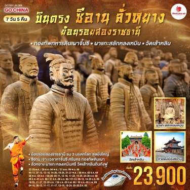 บินตรงซีอาน ลั่วหยาง ย้อนรอยสองราชธานี กองทัพทหารดินเผาจิ๋นซี ผาแกะสลักหลงเหมิน วัดเส้าหลิน 7 วัน 5 คืน