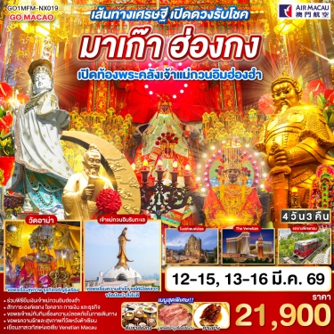 เส้นทางเศรษฐี เปิดดวงรับโชค มาเก๊า ฮ่องกง เปิดท้องพระคลังเจ้าแม่กวนอิมฮ่องฮำ 4 วัน 3 คืน โดยสายการบิน Air Macau (NX)