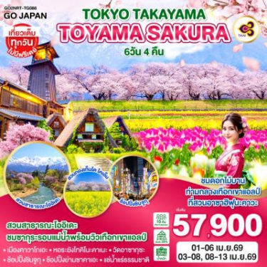 ทัวร์ญี่ปุ่น TOKYO TAKAYAMA TOYAMA SAKURA 6D 4N โดยสายการบินไทย [TG] G)2NRT-TG088